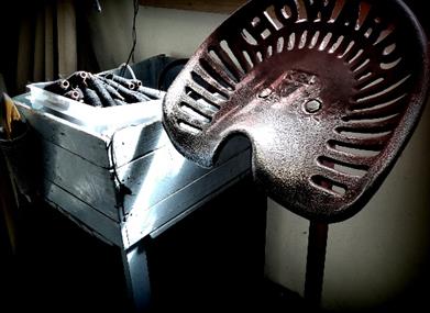 You will probably be met by the 'meet-& greet' committee, i.e. Rick the Mill Dog, our elderly Irish Wheaten Terrier, whose tasks are many and varied; Chief quality tester of of all newly woven tweed; sculptor of yarn cones; biscuit wrangler (don't let those eyes fool you); softness expert, in charge of sheepskin rugs; and a general obstacle, lying in everyone's way.