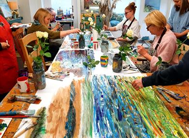 Laura has oodles of experience running her popular painting classes and has supported hundreds of people on their creative journey to wellness. She has also had much success with her own original artwork, and captures the rugged energy of the manx coastline through her stunning semi-abstract landscapes and seascapes. They are often on display in her studio space, and she is available for commissions.