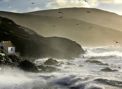 Niarbyl is a secluded beauty spot just south of Dalby Village on the Island’s west coast and of great geological interest. Discover the peaceful bay with its rolling hills, thatched cottages and dramatic coastal paths leading to White Beach. Sunsets are remarkable in this scenic location and on clear nights exceptional for stargazing.