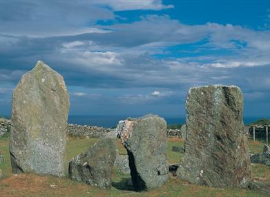 Overlooking the parish of Maughold, Cashtal yn Ard (The Castle of the Heights) is one of the best ancient monuments on the Isle of Man. One of three Neolithic tombs, dating from around 2000 BC. It is the best preserved of them all and one of the largest of its kind in the British Isles.