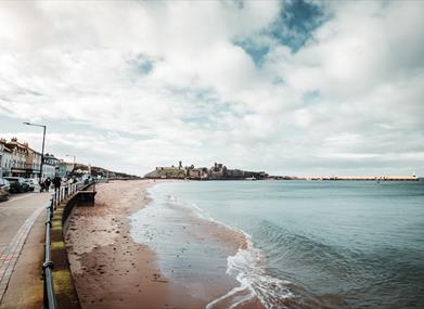 Head north along Peel promenade until you reach the red sandstones of Peel Headlands. As you ascend up the hill you’ll be greeted by stunning views over Peel and its surrounding areas.