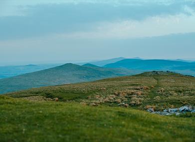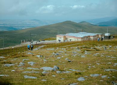 During the summer months a regular electric tram service runs from the village of Laxey to the summit where there is a café serving refreshments.