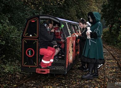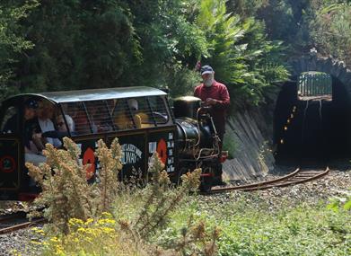 The railway's terminus is located at the Valley Gardens which was once the site of the Great Laxey Mine's Washing Floors. Passengers travel in a tiny carriage, hauled by a replica of one of the original steam engines, through the Island's only railway tunnel and along the line which once carried wagons loaded with the metal ores.