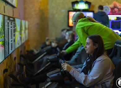 Racing Simulators: Feel the adrenaline rush as you take the wheel in our 6 awesome linked racing simulators. Perfect for speed enthusiasts, our simulators provide an authentic racing experience that will have your heart pounding with every turn. Plus spectators can view the action from out large screen monitor.