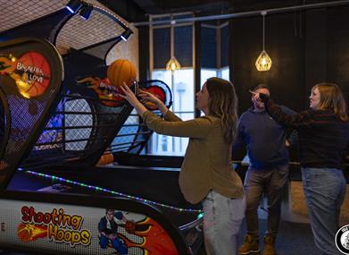 Arcade Machines: If you simply want to spend 5 minutes to a couple of hours playing on our various arcade machines. You don't even have to book and with token packages to suit all budgets we are ideally situated for spontaneous short or long term visits. Our arcade machines include a Dual Motorcycle racer, 2 Basketball lanes, an Air Hockey Table, Whack-a-Frog, 2 great dual shooters, a retro arcade machine with thousands of games to choose from and our always popular punch pad.