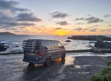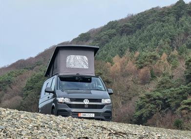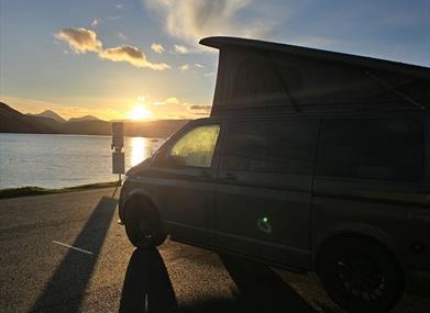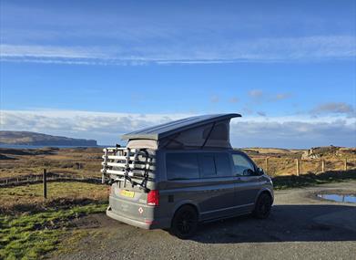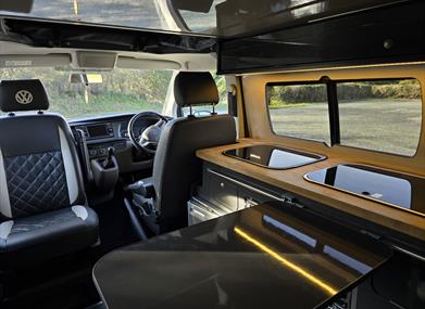 • Modern Comfort: A top-spec campervan with a cosy sleeping area, kitchenette, and dining space.