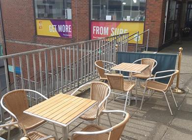 We have a comfortable seating area upstairs with free Wi-Fi and outside seating if you want to watch the world go by on a sunny day with tea/coffee and a slice of homemade cake.
