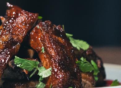 Cooked low and slow basted in our famous sticky BBQ sauce. Originally served at the Lodge at Glen Helen.