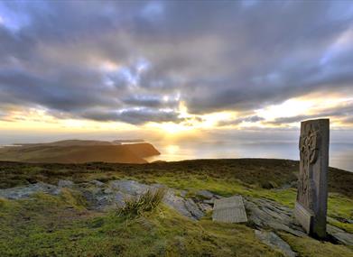 Offering outstanding views of the south-west coast down to the Calf of Man, this summit is the highest point on the coastal footpath (the Raad ny Foillan), known as ‘hill of the day watch’, due to it being a look out post for Viking invaders or locally as 'hill of the rising day' or 'dawn' for when the sun broke over this hill, it was a sign to the herring-fishers to shoot their nets.