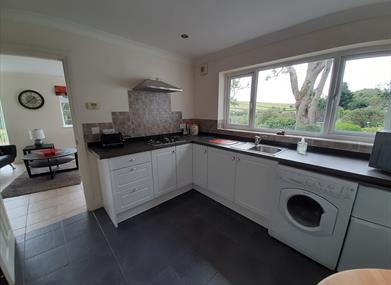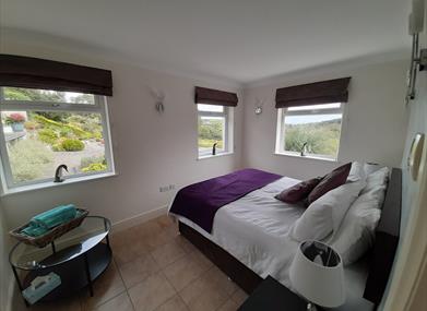 The accommodation comprises a contemporary apartment entrance hall, the bedroom has a double bed or twin beds if required, wardrobes, en-suite wet room with shower. The room enjoys panoramic views to 3 sides, hairdryer, bathrobes and shaver point. A fully fitted kitchen with washing machine, tumble dryer, microwave with oven, gas hob, fridge freezer, plus a view over the gardens. The lounge has ample seating room with triple aspect plus sliding doors that go onto the side terrace where there is a table & chairs.
