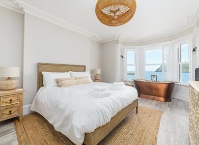 Bedroom 3: Super king size bed, ample storage space and a free-standing roll top bath.