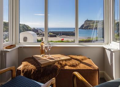 The living room has a magnificent Manx "Chiollagh" stone fireplace with wood burning stove, comfortable seating and a fold-out dining table seating up to four people. Kick back and relax on the chairs in the bay window of the living room which overlooks Port Erin bay and Bradda Head, often bustling with beachgoers in the summer months. The beach is a popular spot for dog walkers in the quieter months too! Baljean is pet friendly too, perfectly geared up to bring them with you as the property features a washroom with a basin around the side of the property.