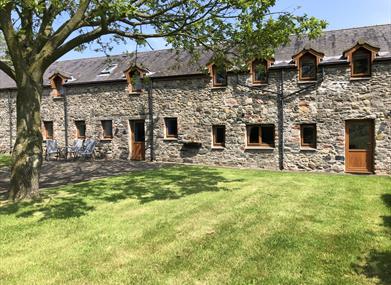 Sleeps 5. A one level, step free, 3 bed farmstay cottage with Gold Award, National Accessible Scheme M1 rating & free fibre WiFi. Fabulous views over open farmland towards the hills. 1 SK Double or twin with en suite and 1 Double, both with patio doors onto the garden. Also 1 Single plus family bathroom with bath & shower. Very spacious with private, enclosed garden area and parking for 2/3 cars. An Assistance dog welcome (no pets). Access to extensive gardens with summerhouse. NO SMOKING PERMITTED.