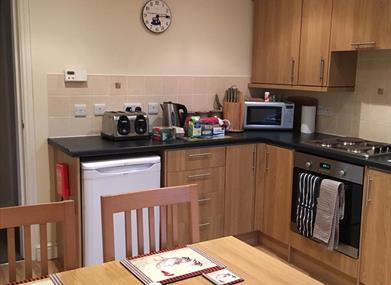 - Washer/dryer, microwave, fridge, oven, four ring hob