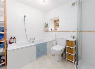 Family Bathroom: Bath with separate shower, WC and wash hand basin