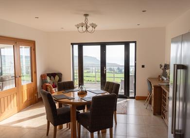 Bronwyn reflects a blend of the contemporary and the traditional with more than a hint of Manx culture in its carefully curated decor. There are panoramic views from the spacious lounge across to the Lake District in England and Scotland to the north. The combined kitchen/diner boasts a similar aspect with an adjacent large balcony seating area for relaxing and dining. We have a private family recreation area (the 'Pig & Guinea') opening directly to the rear garden facing Cumbria and this provides visitors with an alternative option for unwinding. Please note we are NOT licenced to sell or supply alcohol, but guests are more than welcome to bring their own to enjoy if so wished. High speed free WiFi is available in all areas, together with the use of the main lounge, TV, washing machine, tumble dryer, guest fridge and gardens. Cooked and/or continental breakfasts are included in price, plus additional meals at a small cost. Tea and coffee is available 24/7. Quality bedding and towels are provided, and emergency toiletries are available for any forgotten essential items. There is plenty of room for cars and/or motorbikes, but please note the driveway is steep when you first turn in, but levels off in front of the garage area.
