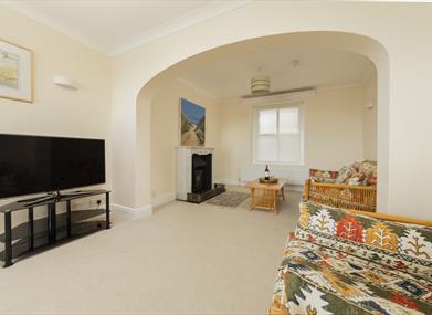 Living area: Two comfortable sofas (one of which is a sofabed), flat screen TV and coffee table