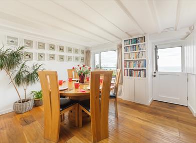 The living room has a wood burning stove and a library that is enjoyed by everyone. The front garden has a table and chair and a bench so that you can sit outside and enjoy the garden and the fantastic country views. The field in front of the house often has lambs, rabbits and calves in it. Guests love that the garden is full of birds, with feeders up all year round.
