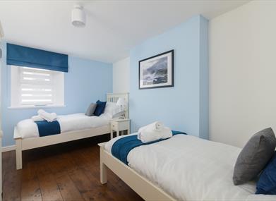 Bedroom 2: Twin beds, wardrobe, bedside cabinets