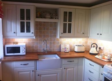 There is a stunning family bathroom with freestanding roll-top bath and separate shower cubicle as well as a downstairs cloakroom. There is a open-plan living, dining area along with a traditionally-styled, fully equipped kitchen with belfast sink, large fridge-freezer, cooker, dishwasher and microwave.