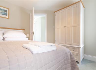 Bedroom 1: King size bed, wardrobe, chest of drawers and bedside cabinets.
