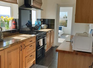 The modern kitchen is fully fitted with a Range double electric oven and gas hob, microwave, kettle, toaster, dishwasher, fridge, freezer and washing machine. Plentiful supplies of crockery, glasses, cookware and utensils are provided.