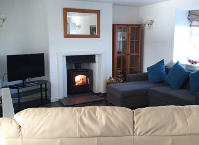 The lounge/dining room has plenty of comfortable seating, a 43" Smart TV, a dining table and beautiful log burner for those cosy nights in.