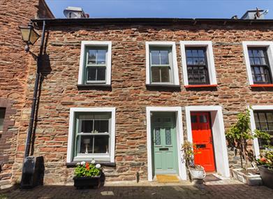 Charles Street itself is known for being one of the most picturesque streets in Peel. The houses are mostly Peel Sandstone and the traditional street lights give it a really original feel. And whilst you cannot drive to the door of the property, there is plenty of on street parking nearby, and for loading and unloading luggage you can pull a car up close by.