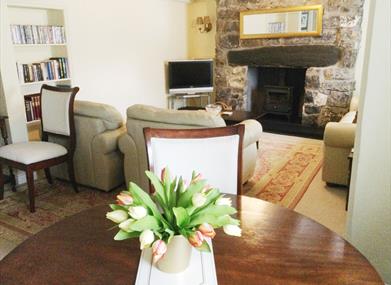 Ground floor: Traditionally furnished spacious Living Room with Dining area. Large well appointed Kitchen with electric hob, Neff oven and integral convection microwave oven.