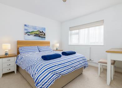 The apartment comprises a double bedroom with comfortable king size bed, a twin bedroom, modern bathroom and open plan lounge, kitchen and dining area. Parking is available on the road.