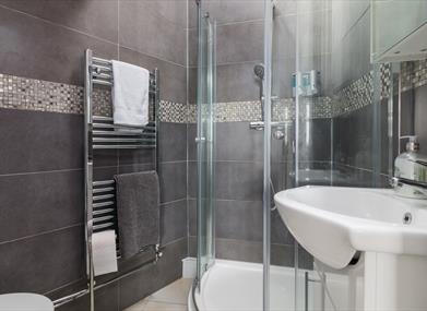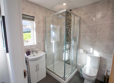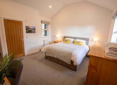 The superb accommodation comprises 3 double bedrooms (2 ensuite). All bedrooms can be adapted to superking or single beds on request. The master bedroom has a superbly comfortable super king size bed with high thread count Egyptian cotton crisp white bed linen. The master bedroom has quality solid oak furniture comprising large double wardrobe, dressing table, bedside tables and chest of drawers. The adjoining ensuite has a walk in shower, wc and sink. The second bedroom has twin zip and link beds with crisp white Egyptian cotton bedding. The quality solid wood bedroom furniture comprises wardrobe, chest of drawers, dressing table and bedside tables. The bedroom also has a convenient ensuite with shower, wc and sink. Sumptuously soft luxurious white towels are provided. The second bedroom has views to the south at the front and over the Fleshwick hills to the west. The third bedroom again has zip and link beds with Egyptian cotton bedding and solid oak bedroom furniture comprising double wardrobe, tallboy chest and bedside tables. This bedroom has level access from the main entrance door. The main bathroom features a walk in shower, wc and sink and a large bath.
