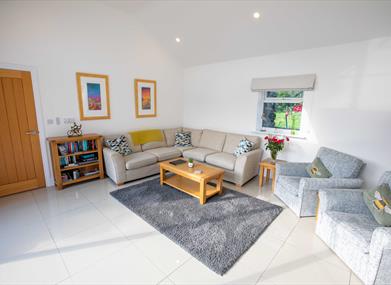 The bright sunny lounge features a large corner sofa perfect for relaxing after a long day. There is a smart tv in the lounge and electrically operated blinds. The lounge has quality solid oak furniture. The high gloss contemporary kitchen has an electric range, fridge freezer, integrated dishwasher, microwave, washing machine, coffee machine with pods and separate tumble dryer. Ironing facilities are provided and there is a full range of Denby crockery, cutlery and kitchen equipment. There is central heating throughout and the lounge has the benefit of underfloor heating. The property can comfortably sleep 6 people. All bedding and towels are provided. Children are welcome and the cottage is smoke free. There is free wifi available and a welcome pack is provided on arrival.