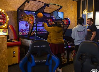 Arcade Machines: If you simply want to spend 5 minutes to a couple of hours playing on our various arcade machines. You don't even have to book and with token packages to suit all budgets we are ideally situated for spontaneous short or long term visits. Our arcade machines include a Dual Motorcycle racer, 2 Basketball lanes, an Air Hockey Table, Whack-a-Frog, 2 great dual shooters, a retro arcade machine with thousands of games to choose from and our always popular punch pad.