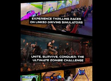 Virtual Reality: Step into another dimension with our exclusive VR setups. Explore new worlds, engage in epic battles, ferd off the Zombie hordes, try one of our escape rooms, wander into fantasy adventures or simply marvel at the immersive environments. Our VR experiences are sure to leave you breathless and craving more. We have player v player or Team v Environment scenarios which are ideal for either team buiilding or freindly competition.
