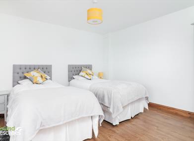 Bedroom 2: Twin beds, bedside cabinets, chest of drawers, wardrobe