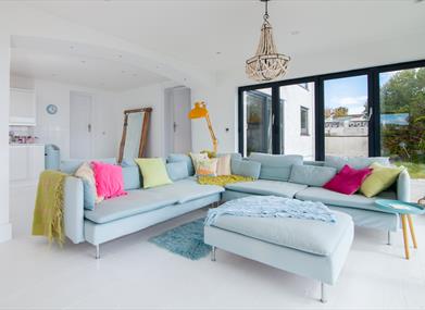 Lounge (Open Plan): Large corner sofa, TV & DVD, Coffee table.