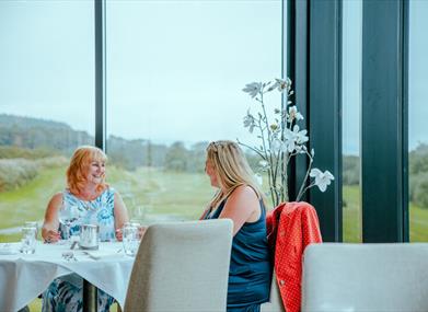> Magnificent floor to ceiling windows providing views of our golf course and Snaefell mountain beyond.