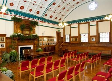 The Council Chamber, which is 47ft long and 33ft wide, is the perfect size for any event and with its arched and panelled ceiling designed by Warings of London, it provides an imposing and unique setting for events.