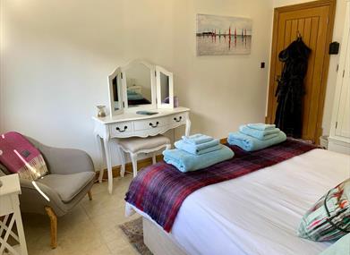 Bronwyn reflects a blend of the contemporary and the traditional with more than a hint of Manx culture in its carefully curated decor. There are panoramic views from the spacious lounge across to the Lake District in England and Scotland to the north. The combined kitchen/diner boasts a similar aspect with an adjacent large balcony seating area for relaxing and dining. We have a private family recreation area (the 'Pig & Guinea') opening directly to the rear garden facing Cumbria and this provides visitors with an alternative option for unwinding. Please note we are NOT licenced to sell or supply alcohol, but guests are more than welcome to bring their own to enjoy if so wished. High speed free WiFi is available in all areas, together with the use of the main lounge, TV, washing machine, tumble dryer, guest fridge and gardens. Cooked and/or continental breakfasts are included in price, plus additional meals at a small cost. Tea and coffee is available 24/7. Quality bedding and towels are provided, and emergency toiletries are available for any forgotten essential items. There is plenty of room for cars and/or motorbikes, but please note the driveway is steep when you first turn in, but levels off in front of the garage area.