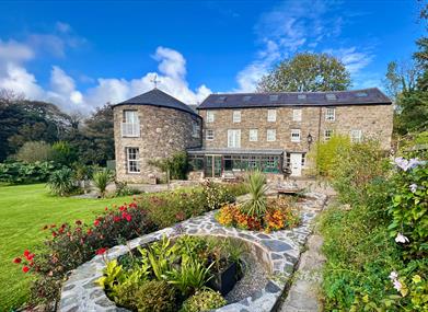 The Mill House is a fully modernised, 500 year old converted Mill in a secluded spot. The property is set in 50 acres of woodland, farmland, lawn and the Fairy Glen with a salmon river.