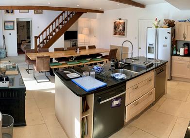 Downstairs there is a large (15m x 5m) room suitable for presentations, workshops, functions, courses, entertainment or can be converted into a period drawing room with adjoining period dining room. Also, a kitchen/sitting room and a conservatory with an oak table that can seat up to 14 guests. There is additional space in the conservatory to seat at least 20 guests.
