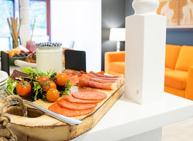 We offer a full continental breakfast, the ingredients for which are sourced locally, whenever supply and seasons permit. For example, a local small holding supplies our organic/free range eggs and the Aalin Dairy, here in Sulby, provides our milk and yoghurts.