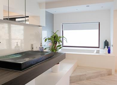 Both rooms are en-suite and fitted with large/deep contemporary baths and have separate walk-in shower/wet room areas, with rainfall showers. All of our guest areas have underfloor heating.